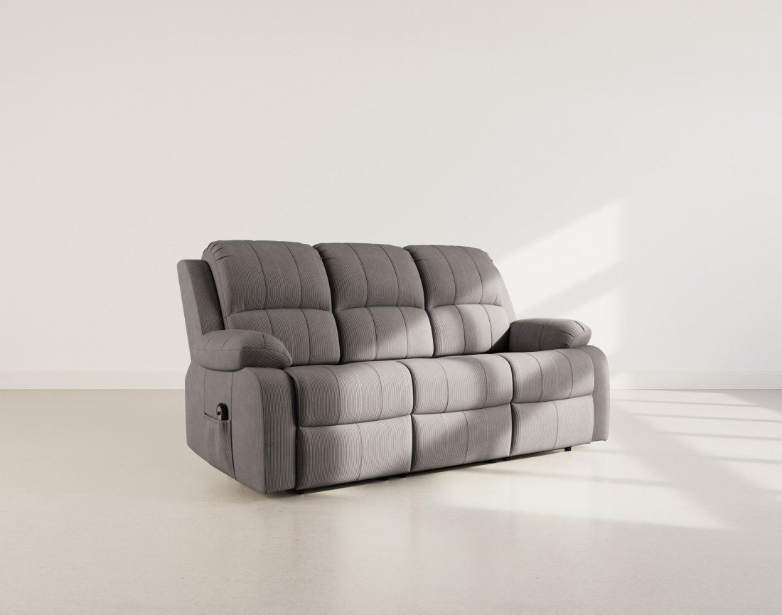 Armand - Canapé 3 places relax électrique en velours côtelé - gris
