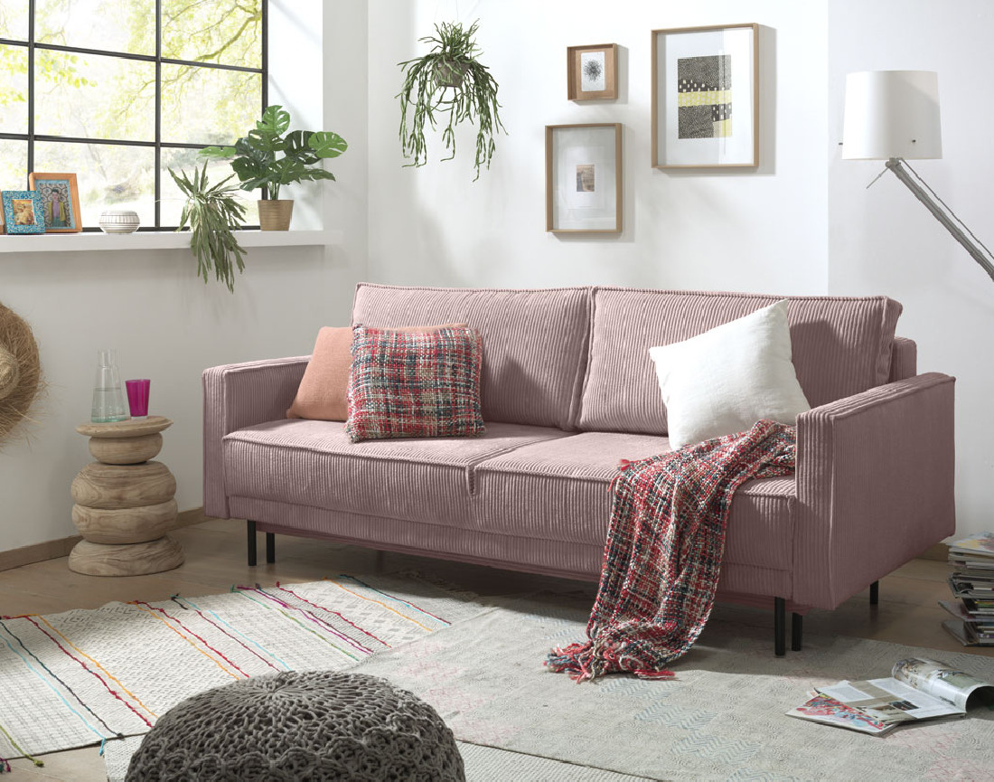 • Canapé 3 places convertible avec coffre en velours côtelé Charlie