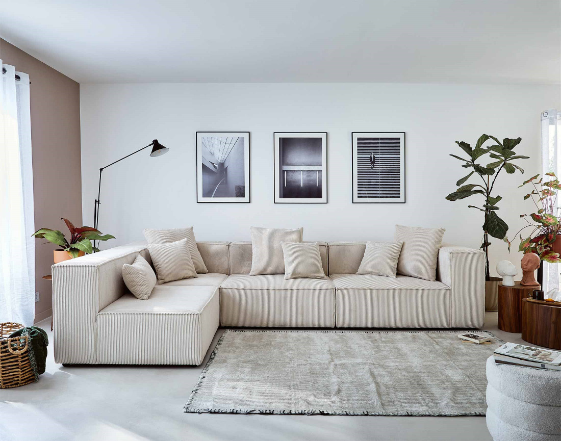 • Canapé modulable d'angle gauche 6 places en velours côtelé Colombine