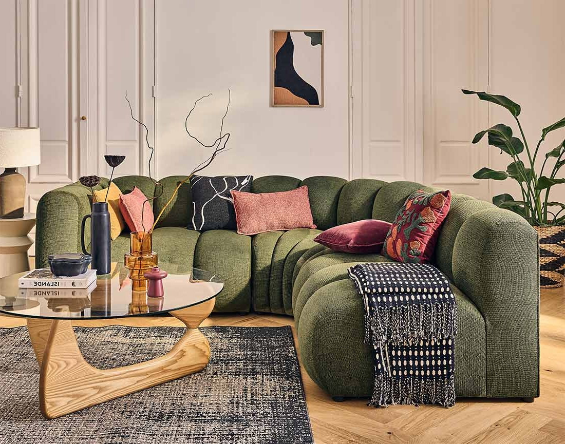 Vous aimez ses lignes arrondies et son design bubble ? Attendez de voir comment ce canapé insufflera une ambiance tendance et contemporaine dans votre intérieur. Avec son tissu texturé, à la fois doux et élégant, il ne manquera pas d'ajouter une note raffinée à votre salon. Et si vous en doutez encore, sachez que nous l'avons décliné en une belle palette de couleurs irrésistibles : du bleu, rose, vert, noir, au taupe, en passant par du beige, du terracotta et même du gris. Avec autant de choix, Debbie est capable de se marier avec tous les styles de décoration, de la sobriété du minimalisme, au charme foisonnant du bohème chic.