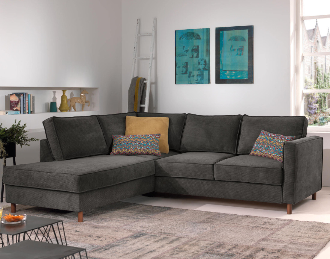 • Canapé d'angle gauche convertible 5 places en velours côtelé Jake