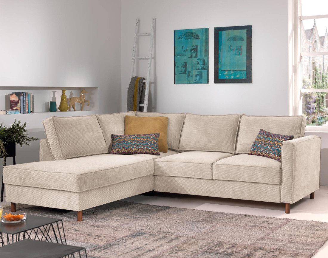 Jake - canapé d'angle gauche - convertible - 5 places - en velours côtelé - beige