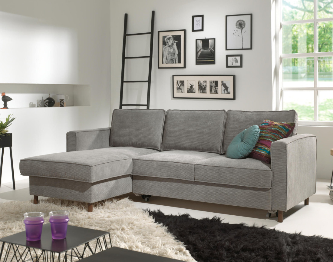 Jake - canapé d'angle gauche - convertible avec coffre - 4 places - en velours côtelé