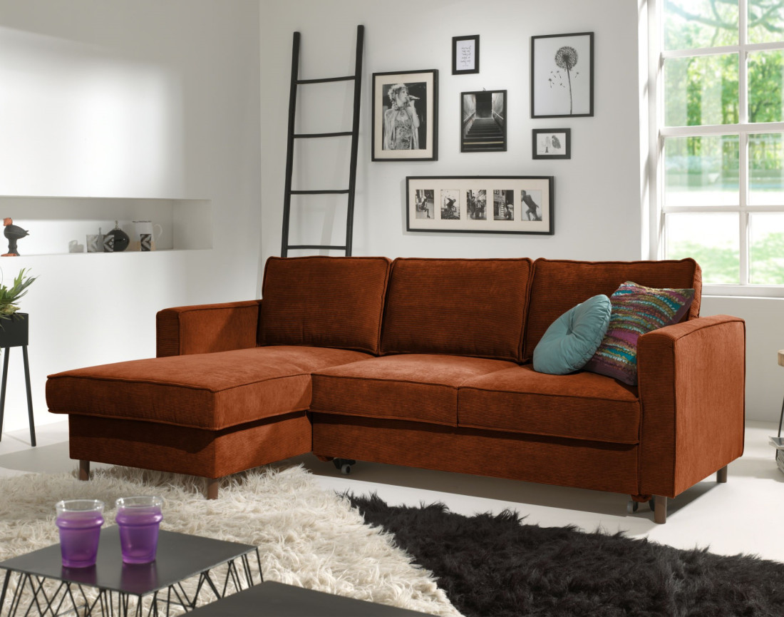 Jake - canapé d'angle gauche - convertible avec coffre - 4 places - en velours côtelé